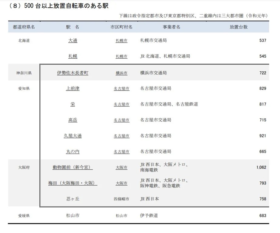 こうして見ていくと、人口の割に放置自転車がいかに多いことがわかります。